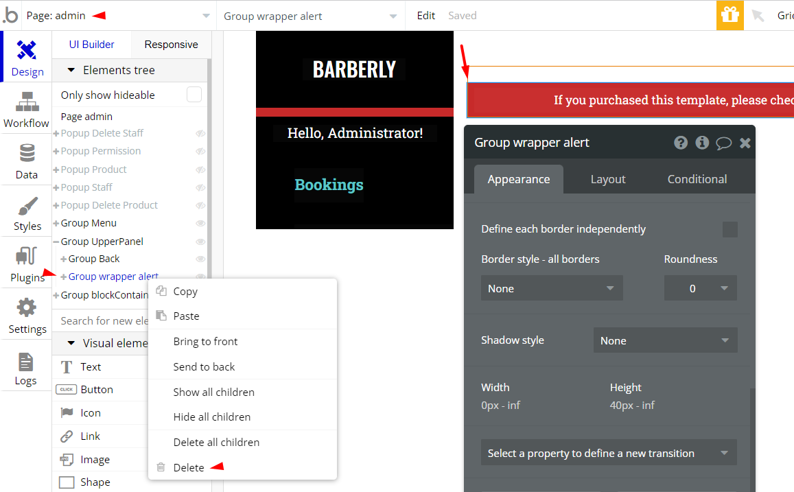 Tip: Initially, on some pages, design elements in Bubble Editor might be hidden.