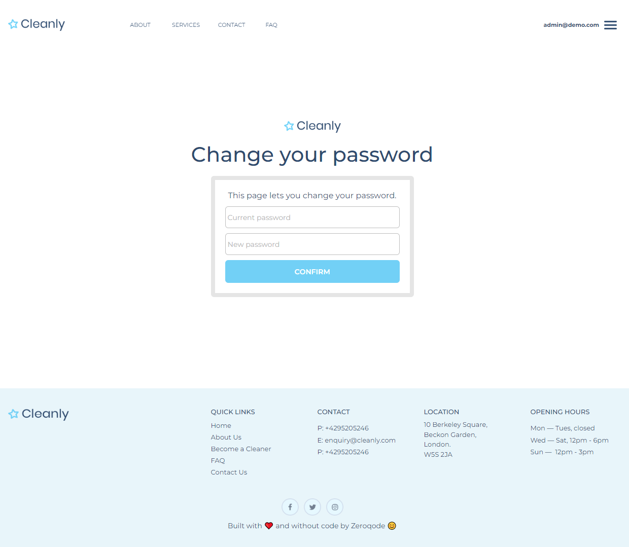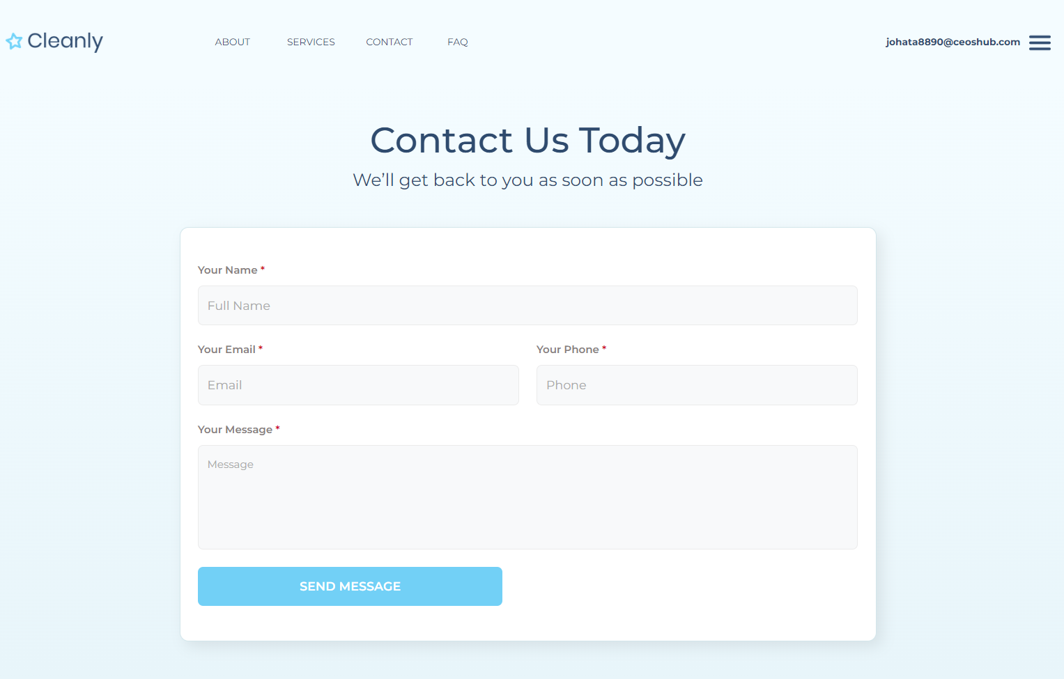 This page contains the form to fill in for the clients if they want to use cleaning services.