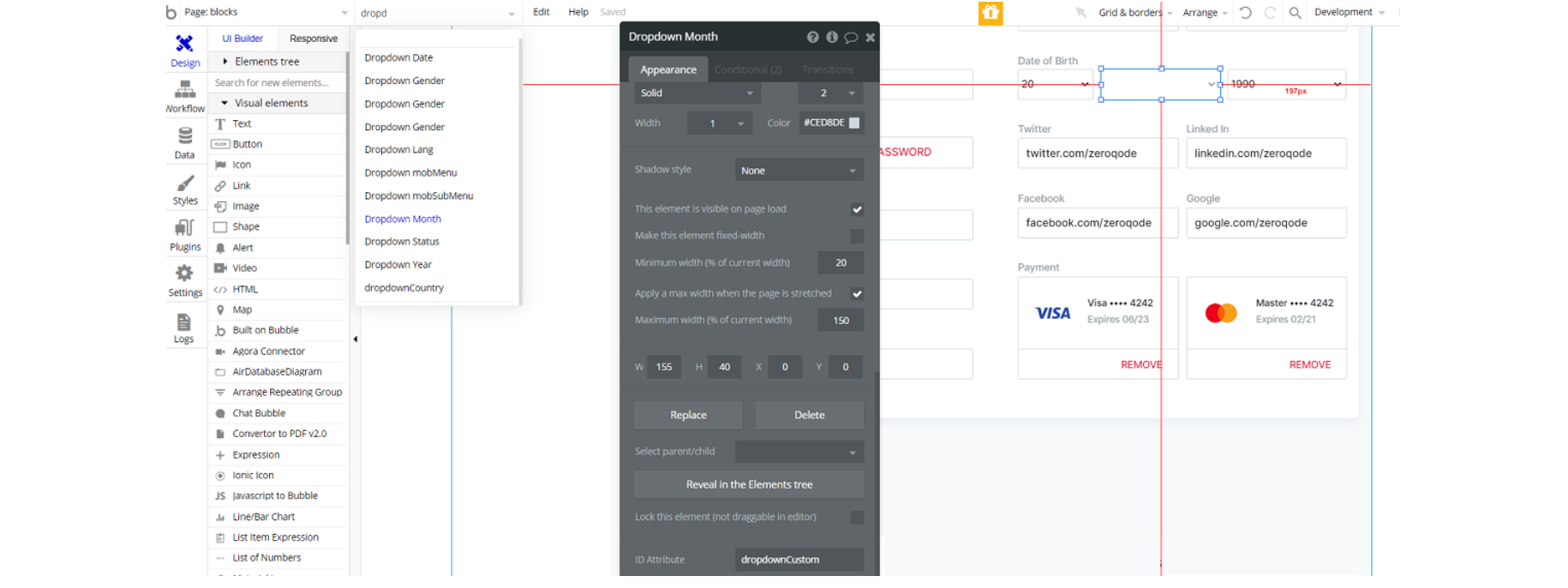 blocks_componentspage - On this page, you see some HTML/CSS code attached in the Page HTML header. #dropdownCustom ID applies to all the dropdown elements in order for them to have a pleasant cross-browser look.