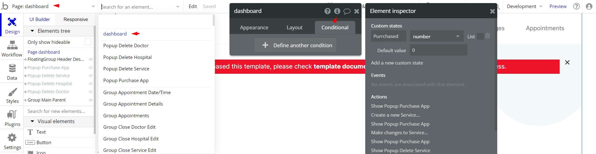 Tip: Initially, on some pages, design elements in Bubble Editor might be hidden.