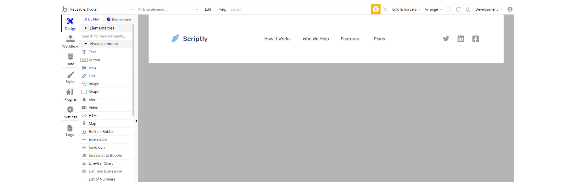 This reusable element is customizable, so it is possible to change the styles and content of elements while keeping workflows or using it as inspiration for your own.