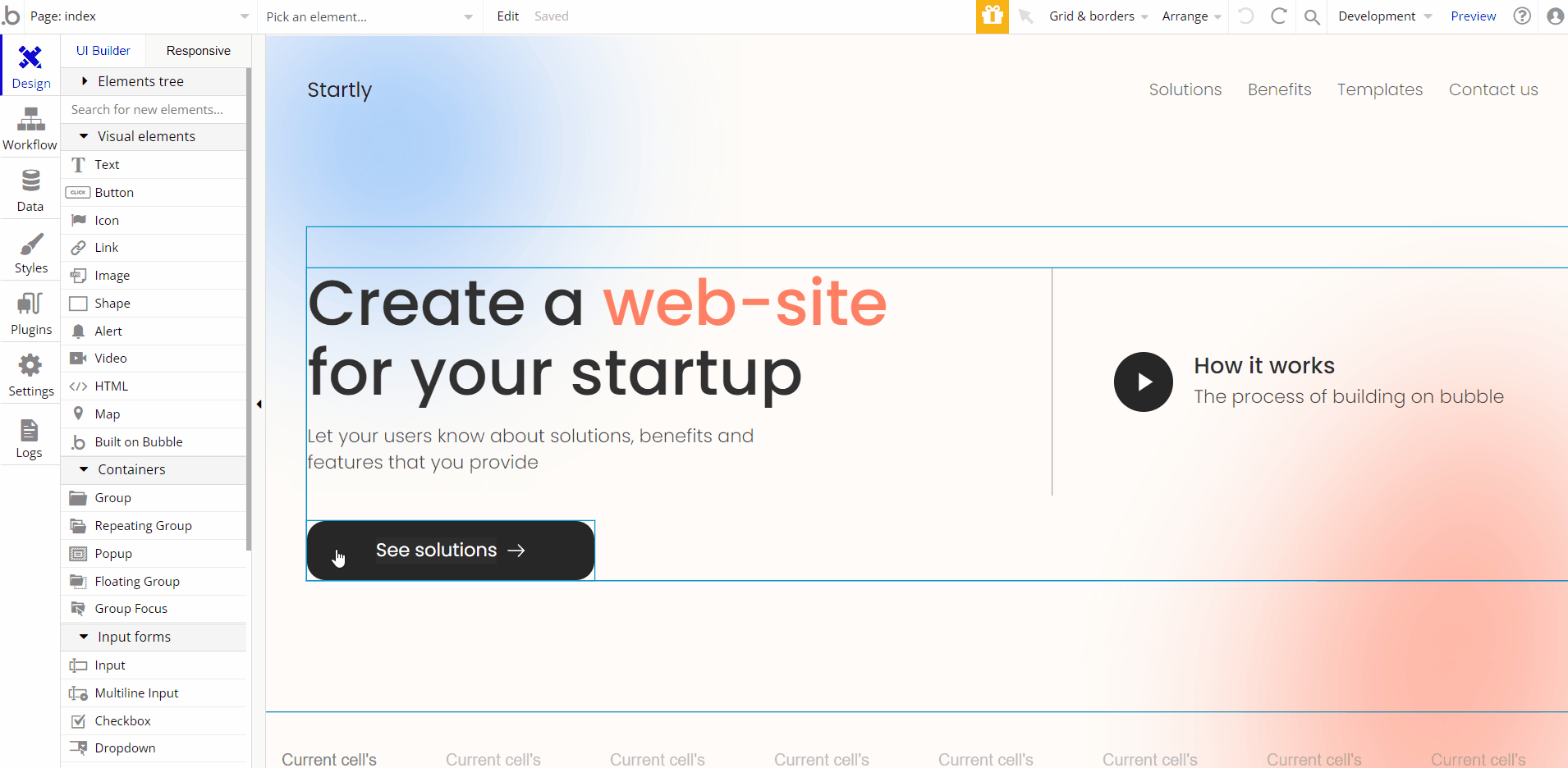 Tip: Initially, on some pages, design elements in Bubble Editor might be hidden.