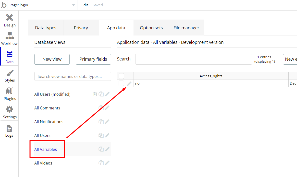 dashboardpage via the Variables datatype Access_rights field. If a demo user with admin rights gets to this page, he will not be able to access the page or do any manipulations because of the conditions on edit/delete actions.