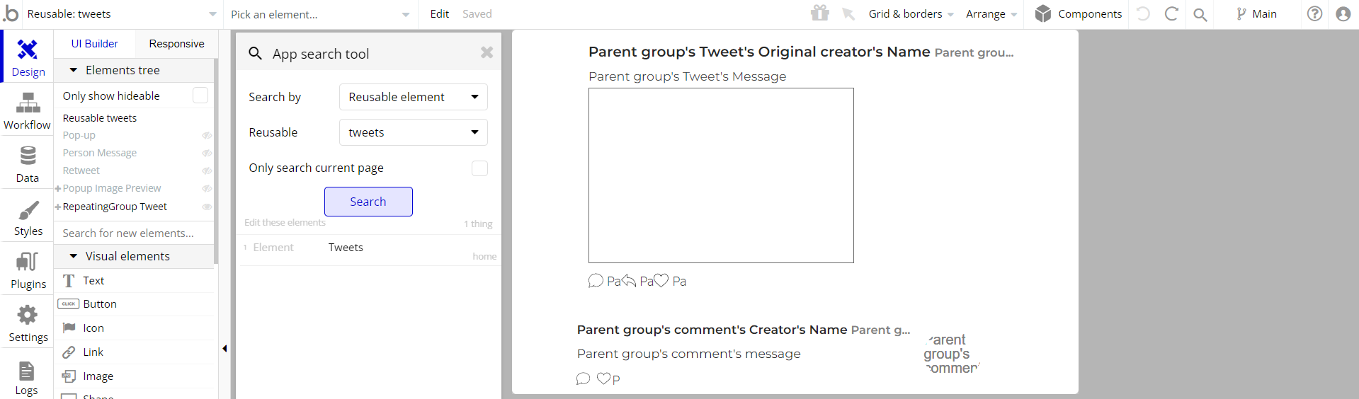 Tip: See Bubble Reference for details https://manual.bubble.io/core-resources/elements/reusable-elements 🙂
